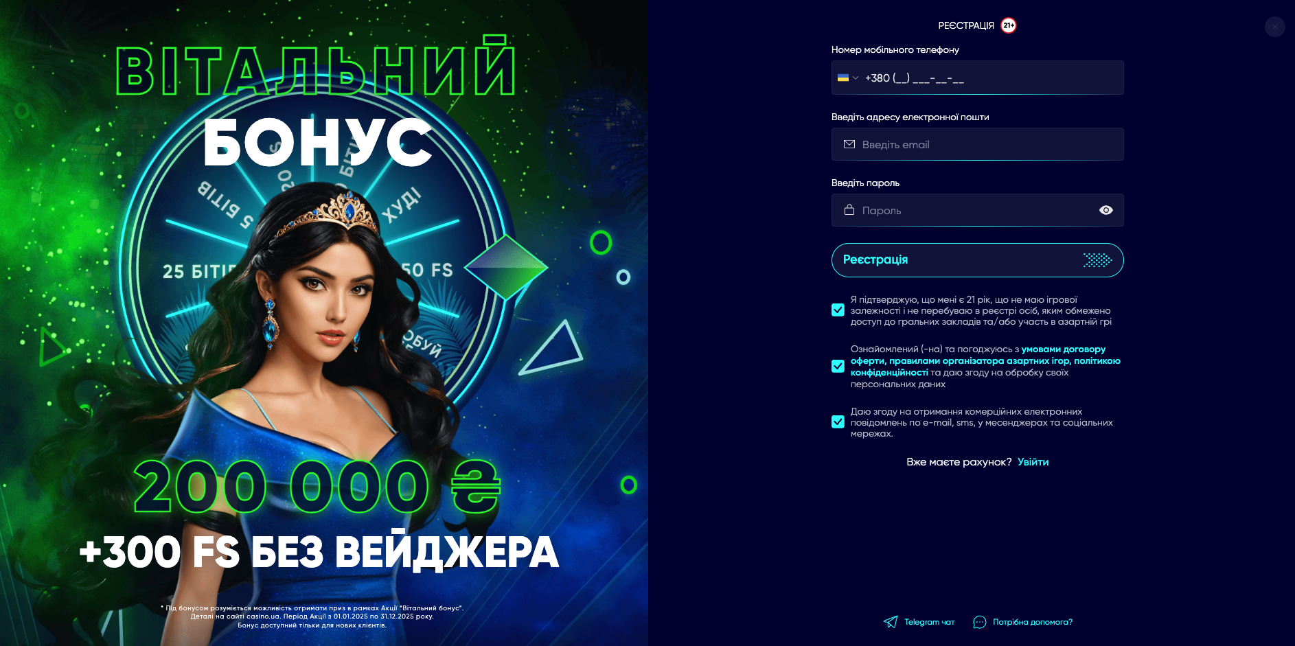 - можливість користуватися всіма доступними бонусами;