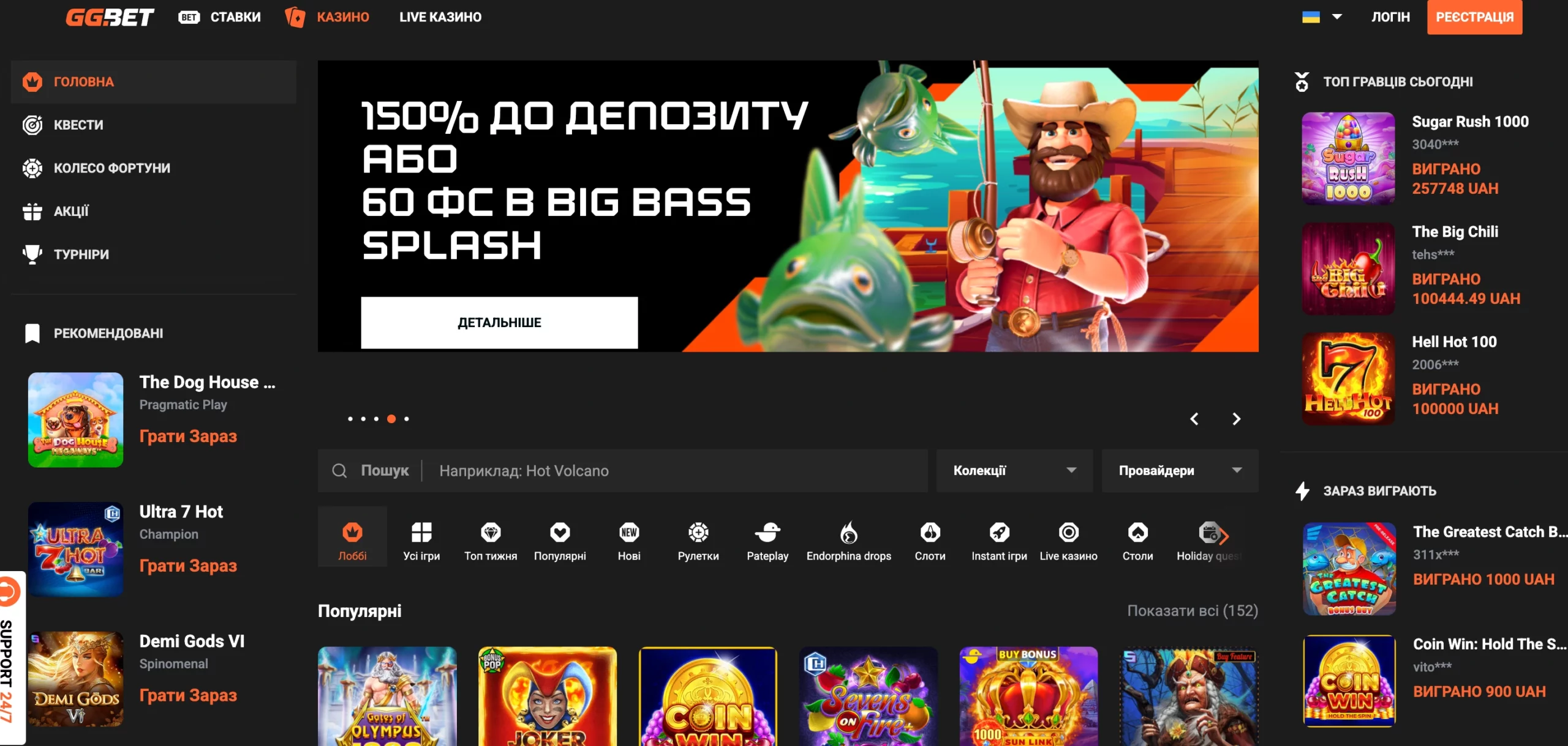 - Перейти на офіційний сайт казино ГГБет Україна.