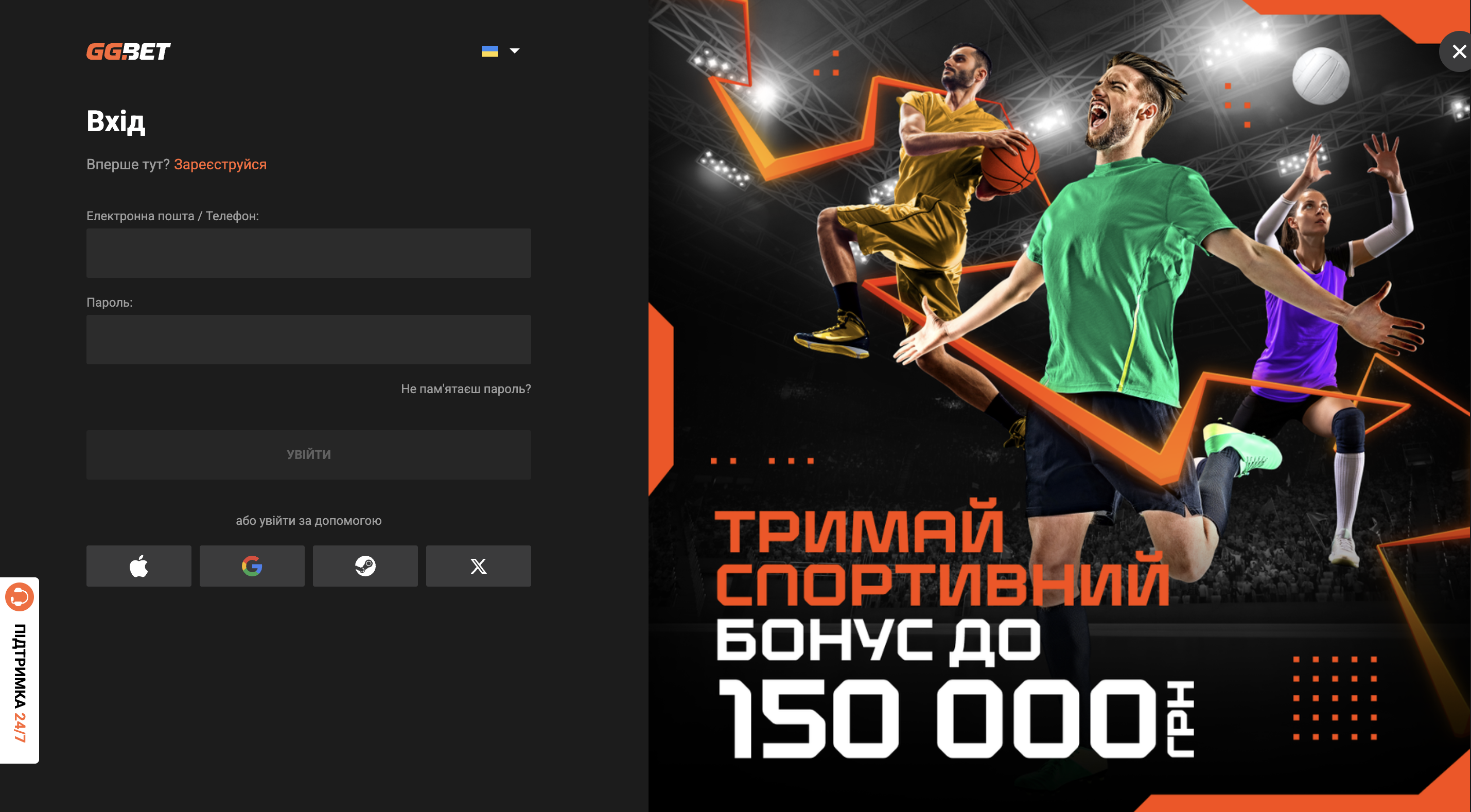 Для того, щоб авторизуватись на сайті казино ГГБет, можете використати один з наступних способів: за номером телефону, за адресою електронної пошти, через соціальні мережі. Вибір того чи іншого способу залежить від того, яким чином власне створювали профіль.
