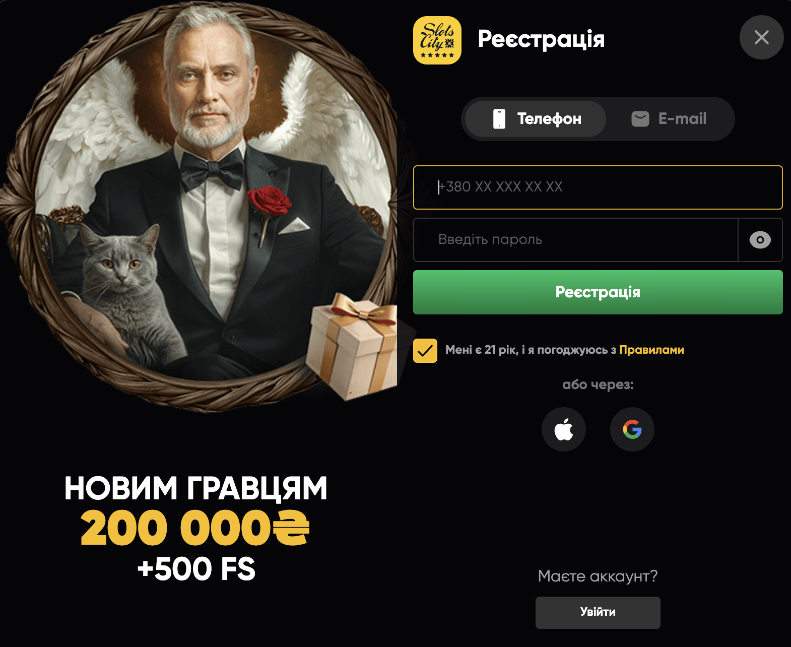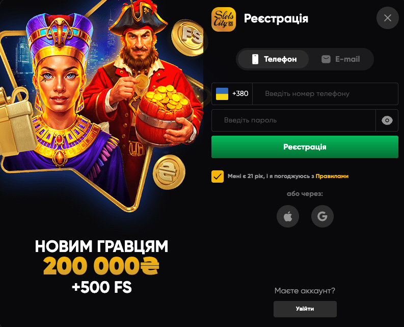 - слот сіті реєстрація