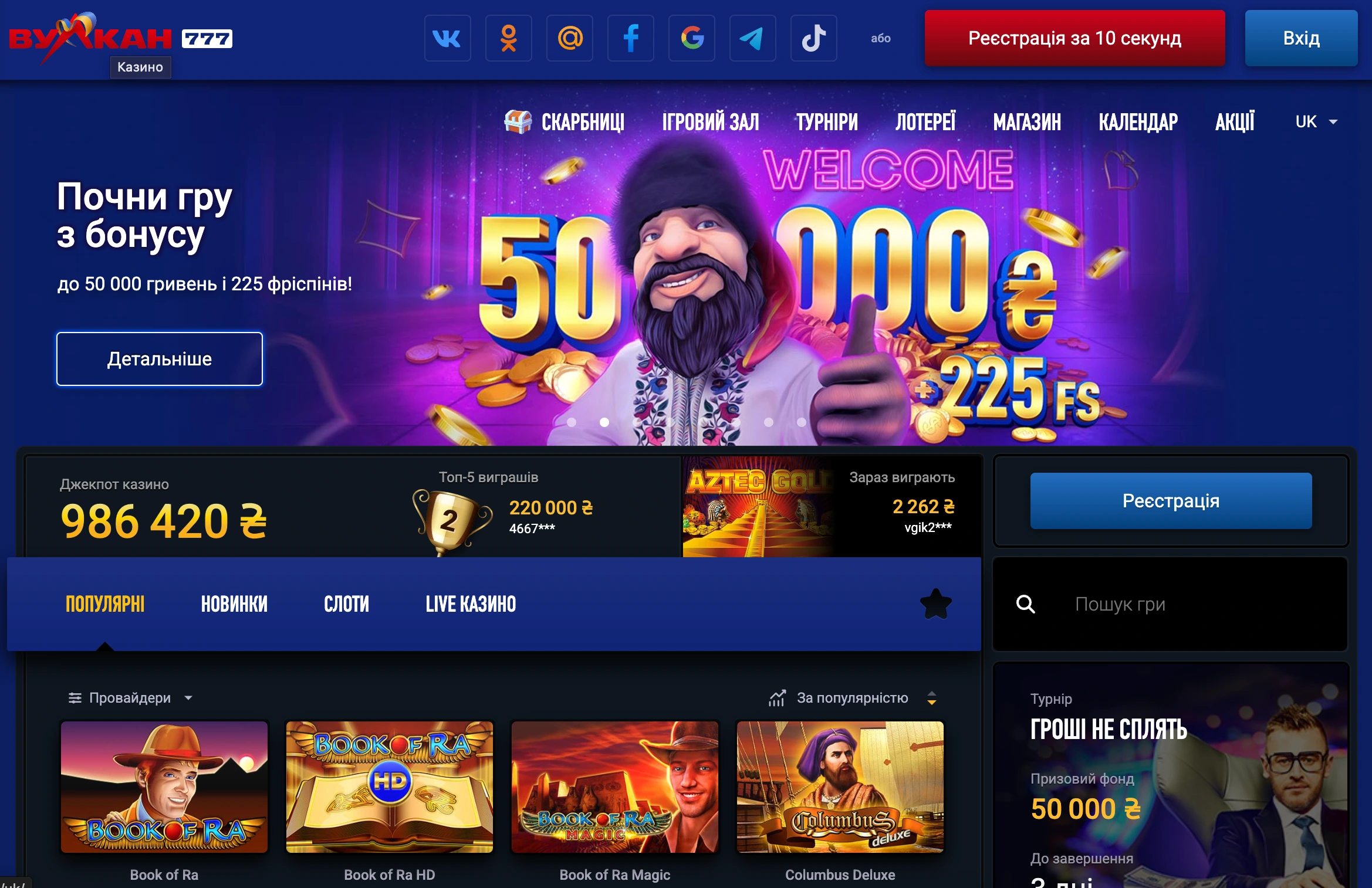 Реєстрація в казино Вулкан в Україні може відбуватися трьома способами: