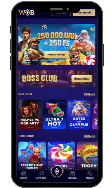 - Через мобільний браузер. Казино WinBoss оптимізоване для мобільних пристроїв, тому можна без проблем увійти на сайт з телефону.
